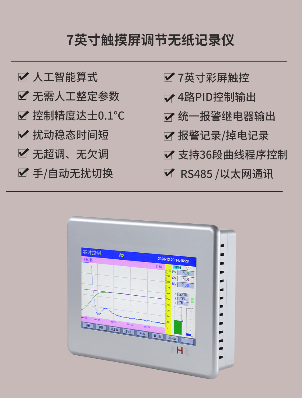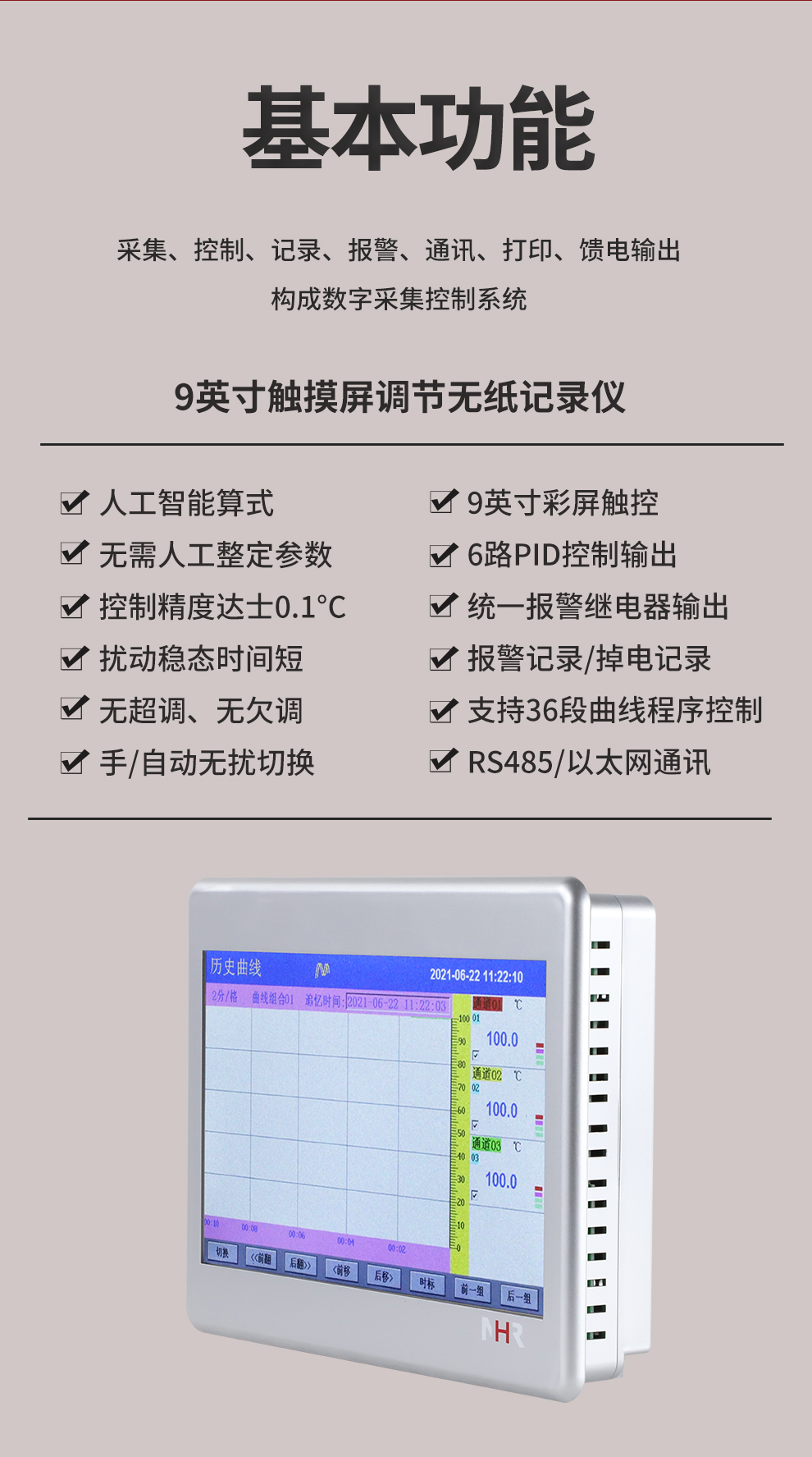 虹潤(rùn)公司是專業(yè)生產(chǎn)無紙記錄儀的國家專精特新“小巨人”企業(yè)。生產(chǎn)的觸摸屏調(diào)節(jié)無紙記錄儀,具有觸摸大屏顯示,真正人工智能算式,無需人工整定參數(shù),控制精度達(dá)士0.1°C,數(shù)據(jù)記錄與轉(zhuǎn)存, RS485/以太網(wǎng)通訊,5/7/9英寸可選等特點(diǎn)。產(chǎn)品獲得智能化控制器、人工智能調(diào)節(jié)器及調(diào)節(jié)方法、模糊PID控制儀及控制方法、平板無紙記錄儀、巡回檢測(cè)顯示方法及裝置等5項(xiàng)國家發(fā)明專利,主持起草物聯(lián)網(wǎng)智能記錄儀表通用技術(shù)條件、物聯(lián)網(wǎng)智能溫度儀表通用技術(shù)條件、工業(yè)過程測(cè)量和控制系統(tǒng)用智能調(diào)節(jié)器等3項(xiàng)國家標(biāo)準(zhǔn),通信系統(tǒng)多通道數(shù)據(jù)采集控制終端規(guī)范軍用標(biāo)準(zhǔn),以及空間數(shù)據(jù)與信息數(shù)據(jù)傳輸系統(tǒng)等2項(xiàng)航天標(biāo)準(zhǔn),參與國際5G標(biāo)準(zhǔn)制定,取得觸摸屏彩色調(diào)節(jié)無紙記錄儀等3項(xiàng)相關(guān)軟件著作權(quán)。產(chǎn)品廣泛應(yīng)用于電力、石化、冶金、化工、食品、制藥、熱處理、水處理、機(jī)械配套等諸多領(lǐng)域。