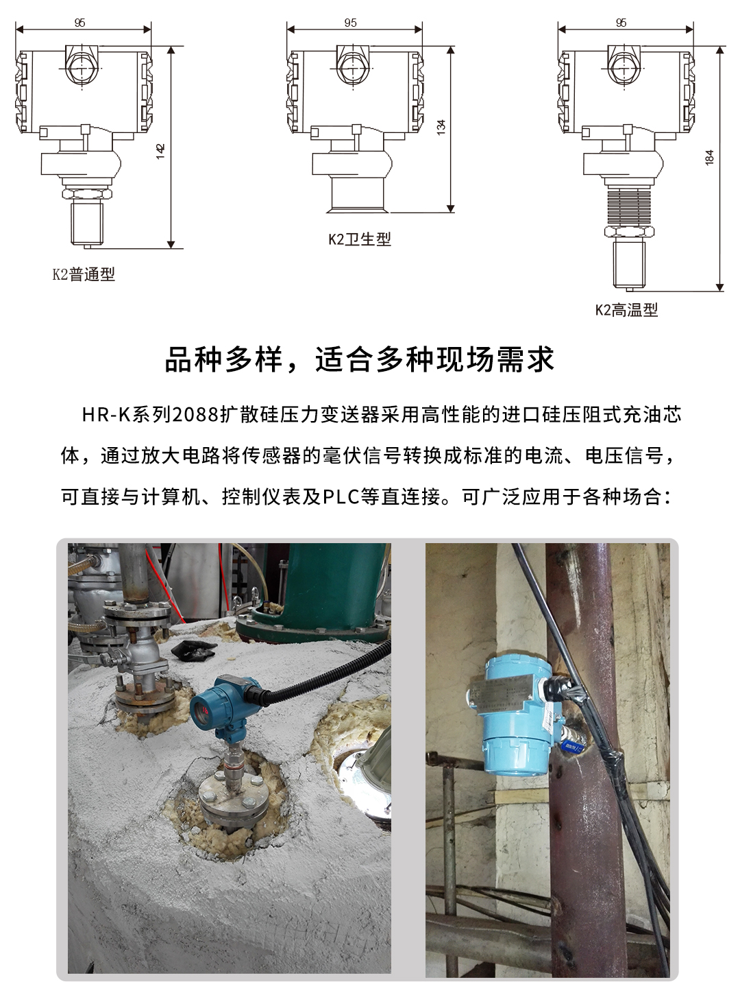 虹潤公司是專業(yè)生產(chǎn)壓力變送器的國家專精特新“小巨人”企業(yè),生產(chǎn)的擴散硅壓力變送器,具有精度高,穩(wěn)定性好,響應速度快,高可靠性,抗過載和抗沖擊能力強,安裝方便等特點。產(chǎn)品獲得一種數(shù)字顯示低功耗壓力表、一種信號發(fā)生器裝置等2項國家發(fā)明專利,主持起草工業(yè)過程控制系統(tǒng)用模擬輸入兩位或多位輸出儀表、工業(yè)過程測量和控制系統(tǒng)用壓力/差壓變送器等2項國家標準,通信系統(tǒng)多通道數(shù)據(jù)采集控制終端規(guī)范軍用標準,以及現(xiàn)場設(shè)備集成等5項智能制造國家標準。參與國際5G標準制定,取得數(shù)顯壓力表等2項相關(guān)軟件著作權(quán)。產(chǎn)品廣泛應用于化工、食品、制藥、電力、設(shè)備配套、供暖、水處理、樓宇等行業(yè),需精準測量流體壓力的現(xiàn)場。