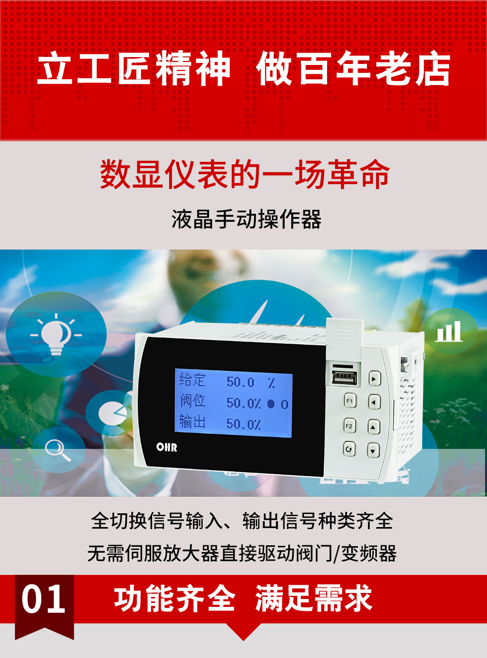 OHR-G500/G500R系列液晶手動操作器/記錄儀適合作為DCS系統(tǒng)回路調(diào)節(jié)控制輸出和智能調(diào)節(jié)器控制輸出的備用操作器使用,能接受與系統(tǒng)同步的給定信號和反饋信號,根據(jù)給定信號輸出相應的控制量.