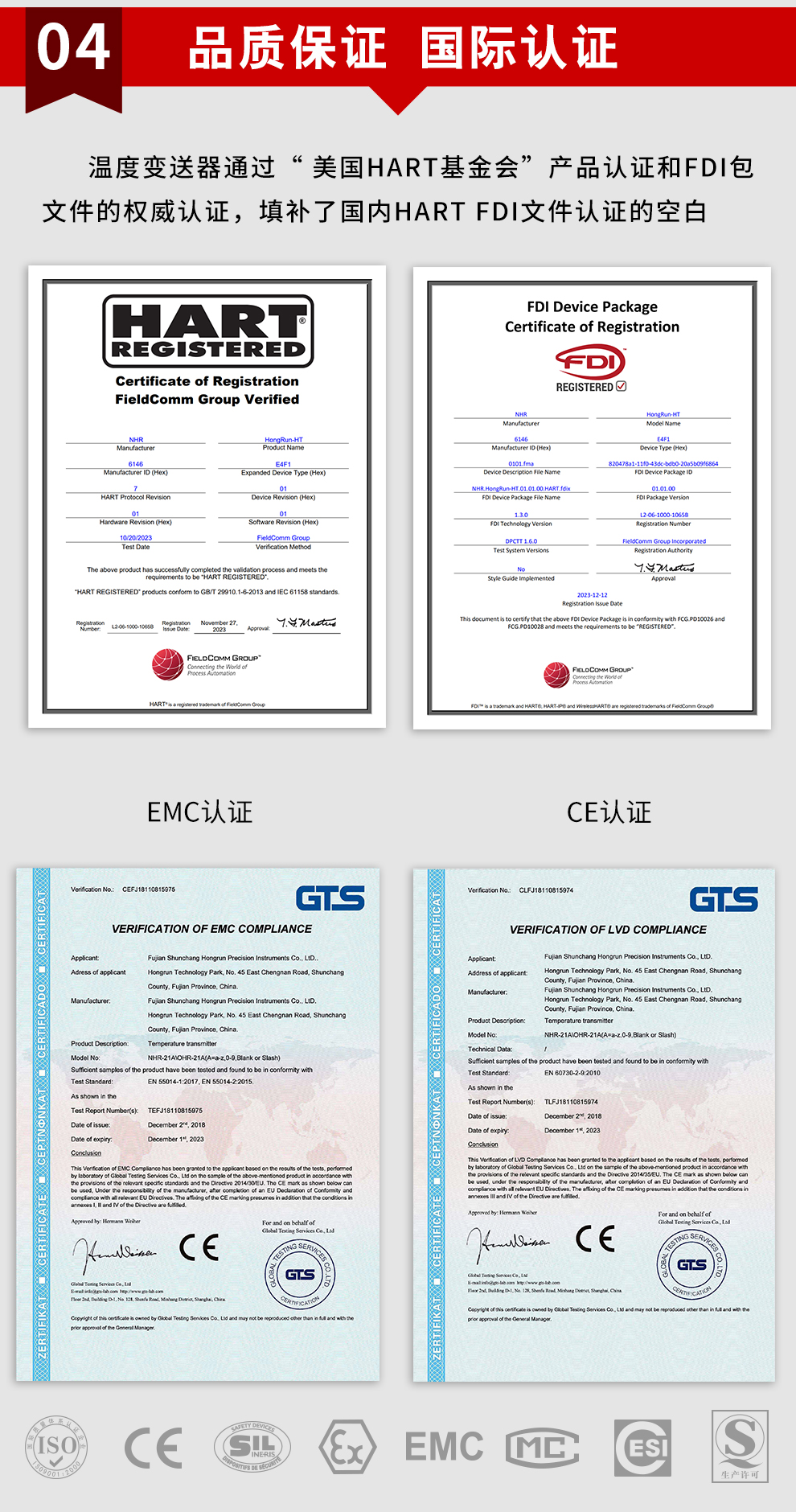 虹潤(rùn)公司是專業(yè)生產(chǎn)溫度變送器的國(guó)家專精特新“小巨人”企業(yè)。生產(chǎn)的現(xiàn)場(chǎng)顯示隔離溫度變送器,具有可修改輸入信號(hào)類型,測(cè)量精度高,穩(wěn)定性好,帶HART或RS485通訊計(jì)等特點(diǎn)。該產(chǎn)品不僅通過(guò)德國(guó)萊茵 CE 認(rèn)證與 SIL 功能安全認(rèn)證,還獲得具備減震抗干擾能力的溫度變送器、信號(hào)隔離器、一種二端子模塊、無(wú)源信號(hào)隔離器等3項(xiàng)國(guó)家發(fā)明專利。主持起草物聯(lián)網(wǎng)智能溫度儀表、現(xiàn)場(chǎng)設(shè)備工具(FDT)接口規(guī)范、工業(yè)過(guò)程測(cè)量和控制系統(tǒng)用溫度變送器等3項(xiàng)國(guó)家標(biāo)準(zhǔn),以及通信系統(tǒng)多通道數(shù)據(jù)采集控制終端規(guī)范軍用標(biāo)準(zhǔn)。參與國(guó)際5G標(biāo)準(zhǔn)制定,取得高精度溫度變送器等3項(xiàng)相關(guān)軟件著作權(quán)。產(chǎn)品廣泛應(yīng)用于石油、化工、電力、冶金、制藥、食品、水處理等各種工業(yè)領(lǐng)域。