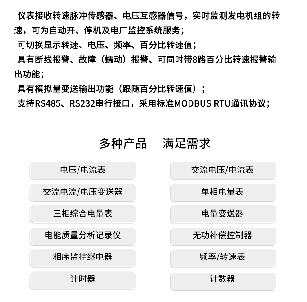 OHR-C800系列電廠專用轉(zhuǎn)速表適用于測(cè)量發(fā)電機(jī)組轉(zhuǎn)速,儀表雙屏顯示轉(zhuǎn)速、電壓、頻率、百分比轉(zhuǎn)速,有峰值記憶顯示、斷線報(bào)警、故障(蠕動(dòng))報(bào)警、8路繼電器跟隨百分比轉(zhuǎn)速輸出、模擬量變送輸出、RS232/485通訊接口等功能。