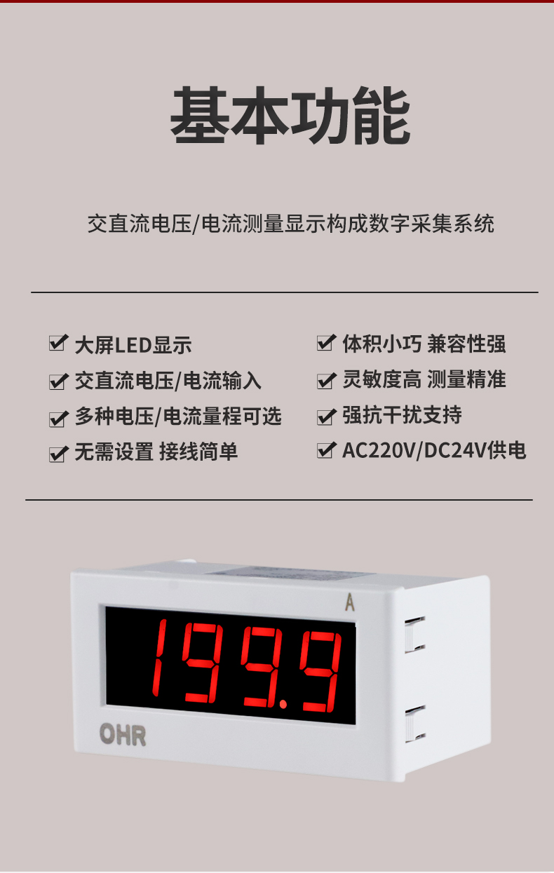 虹潤公司是專業(yè)生產(chǎn)數(shù)字電壓表的國家專精特新“小巨人”企業(yè)。生產(chǎn)的電壓/電流表,具有大屏LED顯示,交直流電壓/電流輸入,免設(shè)置易接線,性價比高等特點。產(chǎn)品獲得一種交流信號變送器、交直流信號轉(zhuǎn)換電路、基于DCS技術(shù)的盤裝式三相電量表等3項國家發(fā)明專利,主持起草現(xiàn)場設(shè)備集成等5項智能制造國家標準,物聯(lián)網(wǎng)電流變送器規(guī)范、物聯(lián)網(wǎng)總體技術(shù)智能傳感器特性與分類等2項國家標準,以及直流漏電流傳感器規(guī)范、通信系統(tǒng)多通道數(shù)據(jù)采集控制終端規(guī)范等2項軍用標準,參與國際5G標準制定。產(chǎn)品廣泛應(yīng)用于電力系統(tǒng)、工業(yè)制造、自動化設(shè)備、計量檢測等各種工業(yè)領(lǐng)域。