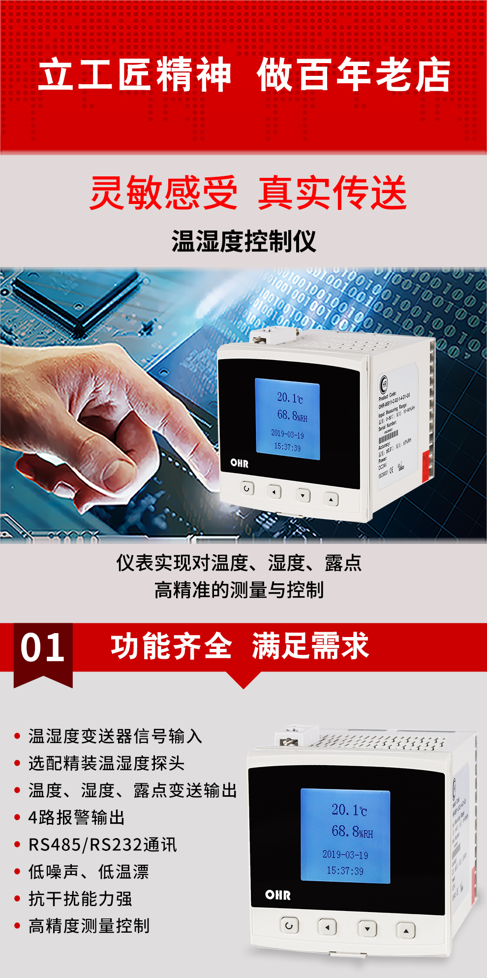 OHR-WS10系列溫濕度控制儀以先進(jìn)的32位ARM處理器為核心,采用進(jìn)口高性能溫濕度傳感器,可同時對被測環(huán)境的溫度、濕度進(jìn)行測量和控制,并可通過溫、濕度計算出露點(diǎn)。它具有精度高、穩(wěn)定性強(qiáng)、響應(yīng)速度快等特點(diǎn),適用于通訊機(jī)房、辦公室、醫(yī)院、檔案館、博物館、賓館、樓宇自控等場所的溫濕度測量。