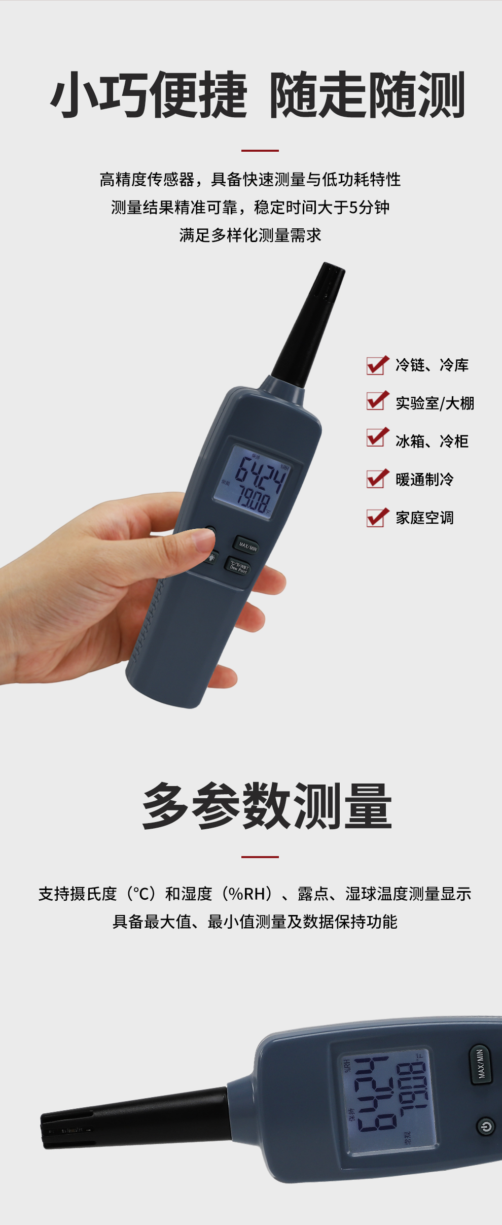 虹潤公司是專業(yè)生產(chǎn)環(huán)境監(jiān)測儀表的國家專精特新“小巨人”企業(yè)。生產(chǎn)的手持式溫濕度檢測儀,具有測量精度高,多參數(shù)測量,最大最小值記錄,小巧便捷、低功耗省電設(shè)計等特點。產(chǎn)品獲得一種手持式低功耗溫濕度檢測儀、大屏幕溫濕度記錄儀等2項國家發(fā)明專利,主持起草物聯(lián)網(wǎng)智能溫度儀表通用技術(shù)條件、冷鏈溫度記錄儀等2項國家標(biāo)準(zhǔn),以及通信系統(tǒng)多通道數(shù)據(jù)采集控制終端規(guī)范軍用標(biāo)準(zhǔn),以及現(xiàn)場設(shè)備集成等5項智能制造國家標(biāo)準(zhǔn),參與國際5G標(biāo)準(zhǔn)制定,取得環(huán)境溫濕度測試儀等3項相關(guān)軟件著作權(quán)。產(chǎn)品廣泛應(yīng)用于實驗室、博物館、農(nóng)業(yè)大棚、生產(chǎn)車間、倉庫、配電機房等諸多領(lǐng)域。