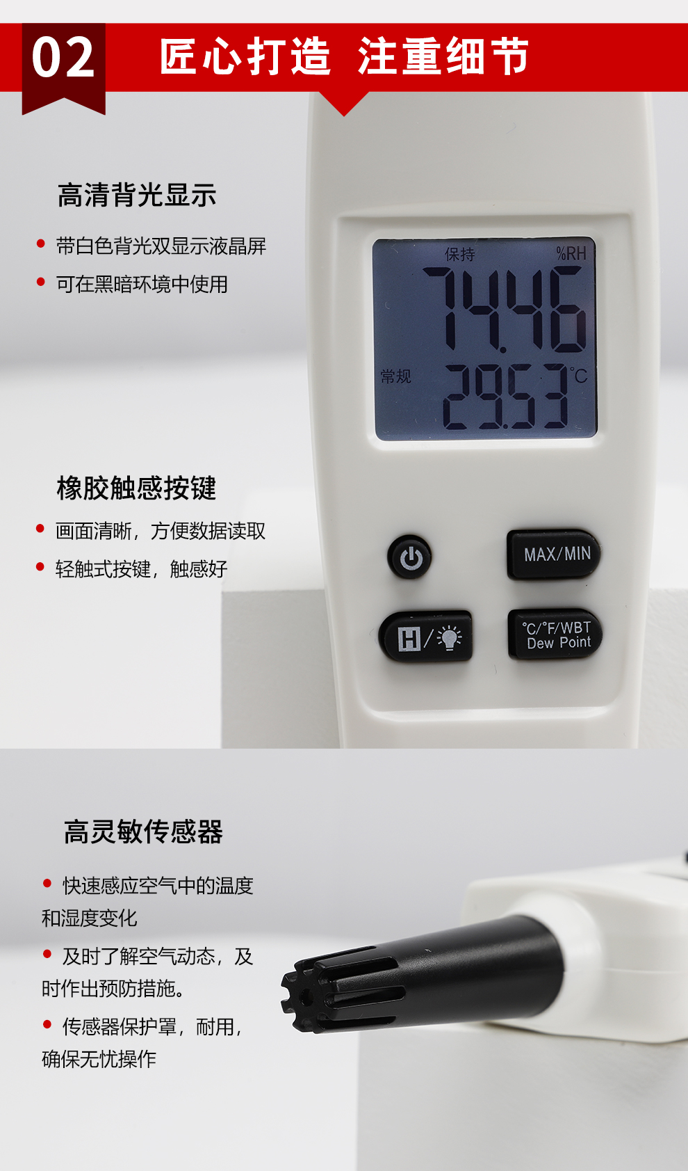 虹潤公司是專業(yè)生產(chǎn)環(huán)境監(jiān)測儀表的國家專精特新“小巨人”企業(yè)。生產(chǎn)的手持式溫濕度檢測儀,具有測量精度高,多參數(shù)測量,最大最小值記錄,小巧便捷、低功耗省電設(shè)計等特點。產(chǎn)品獲得一種手持式低功耗溫濕度檢測儀、大屏幕溫濕度記錄儀等2項國家發(fā)明專利,主持起草物聯(lián)網(wǎng)智能溫度儀表通用技術(shù)條件、冷鏈溫度記錄儀等2項國家標(biāo)準,以及通信系統(tǒng)多通道數(shù)據(jù)采集控制終端規(guī)范軍用標(biāo)準,以及現(xiàn)場設(shè)備集成等5項智能制造國家標(biāo)準,參與國際5G標(biāo)準制定,取得環(huán)境溫濕度測試儀等3項相關(guān)軟件著作權(quán)。產(chǎn)品廣泛應(yīng)用于實驗室、博物館、農(nóng)業(yè)大棚、生產(chǎn)車間、倉庫、配電機房等諸多領(lǐng)域。