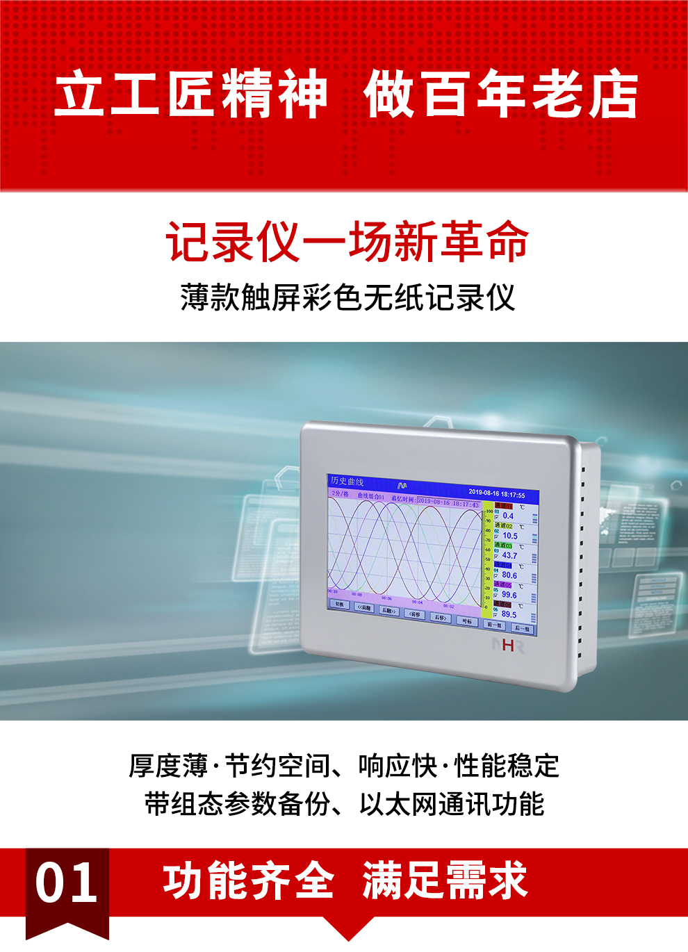 虹潤公司是專業(yè)生產(chǎn)無紙記錄儀的國家專精特新“小巨人”企業(yè)。生產(chǎn)的觸摸屏無紙記錄儀,具有觸摸大屏顯示,多通道全切換輸入,數(shù)據(jù)記錄與轉(zhuǎn)存, RS485/以太網(wǎng)通訊,5/7/9英寸可選等特點。產(chǎn)品獲得一種無紙記錄儀、數(shù)據(jù)采集控制工作站、智能化控制器、巡回檢測顯示方法及裝置等4項國家發(fā)明專利,主持起草物聯(lián)網(wǎng)智能記錄儀表通用技術(shù)條件、物聯(lián)網(wǎng)智能溫度儀表通用技術(shù)條件等2項國家標(biāo)準,通信系統(tǒng)多通道數(shù)據(jù)采集控制終端規(guī)范軍用標(biāo)準,以及空間數(shù)據(jù)與信息數(shù)據(jù)傳輸系統(tǒng)等2項航天標(biāo)準,參與國際5G標(biāo)準制定,取得觸摸屏彩色無紙記錄儀等4項相關(guān)軟件著作權(quán)。產(chǎn)品廣泛應(yīng)用于冶金、石化、電力、制藥、新能源、現(xiàn)代農(nóng)業(yè)、生產(chǎn)過程等諸多領(lǐng)域。
