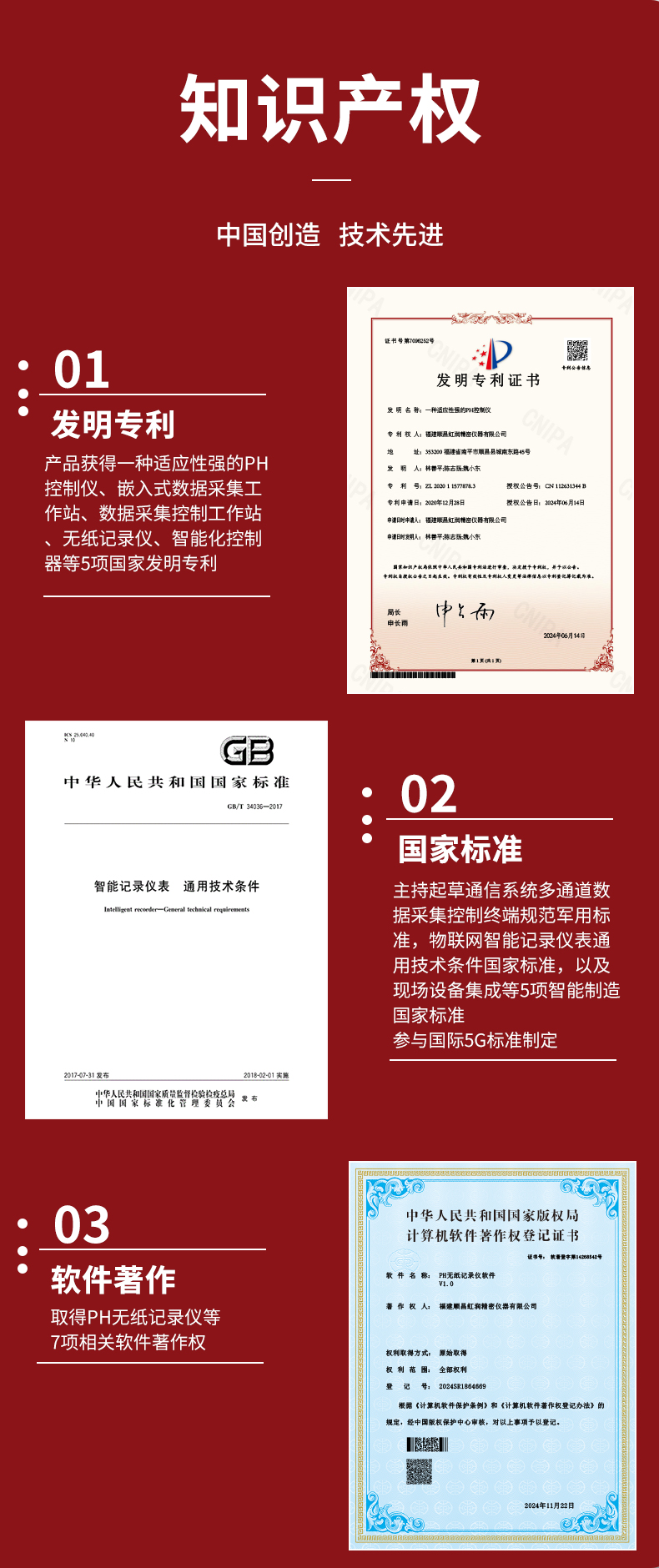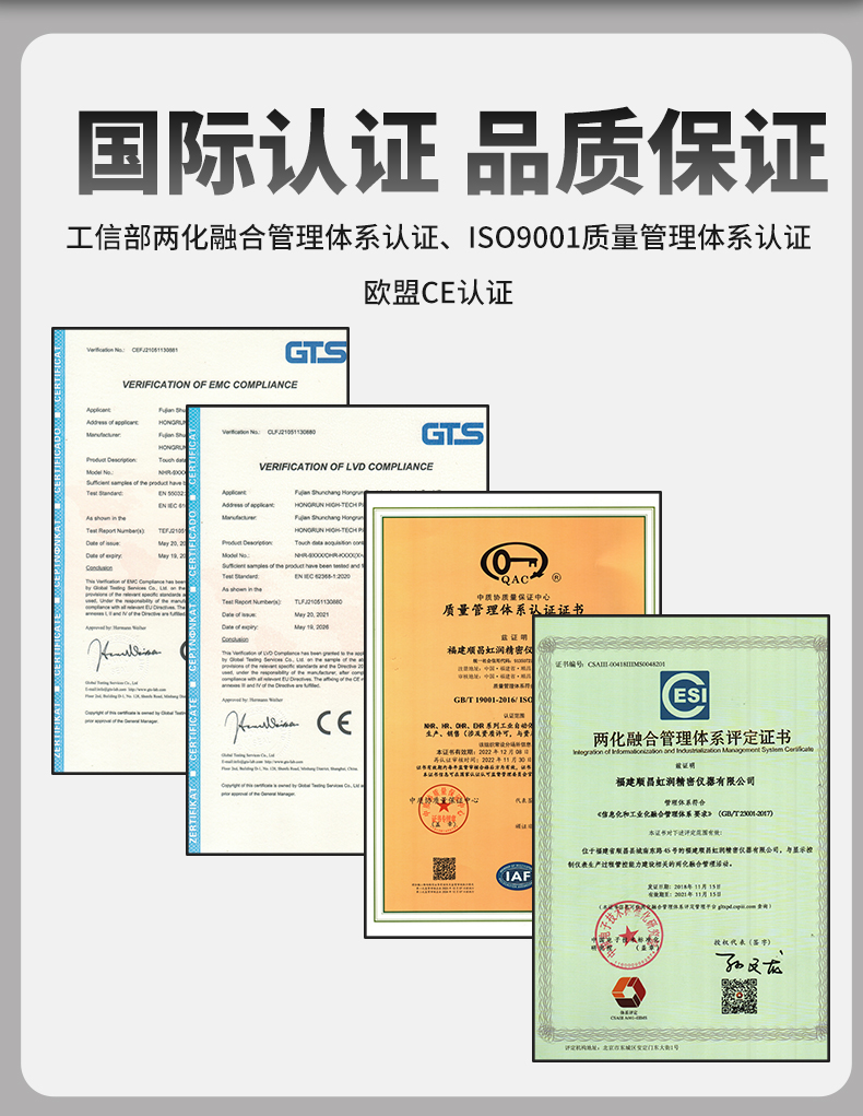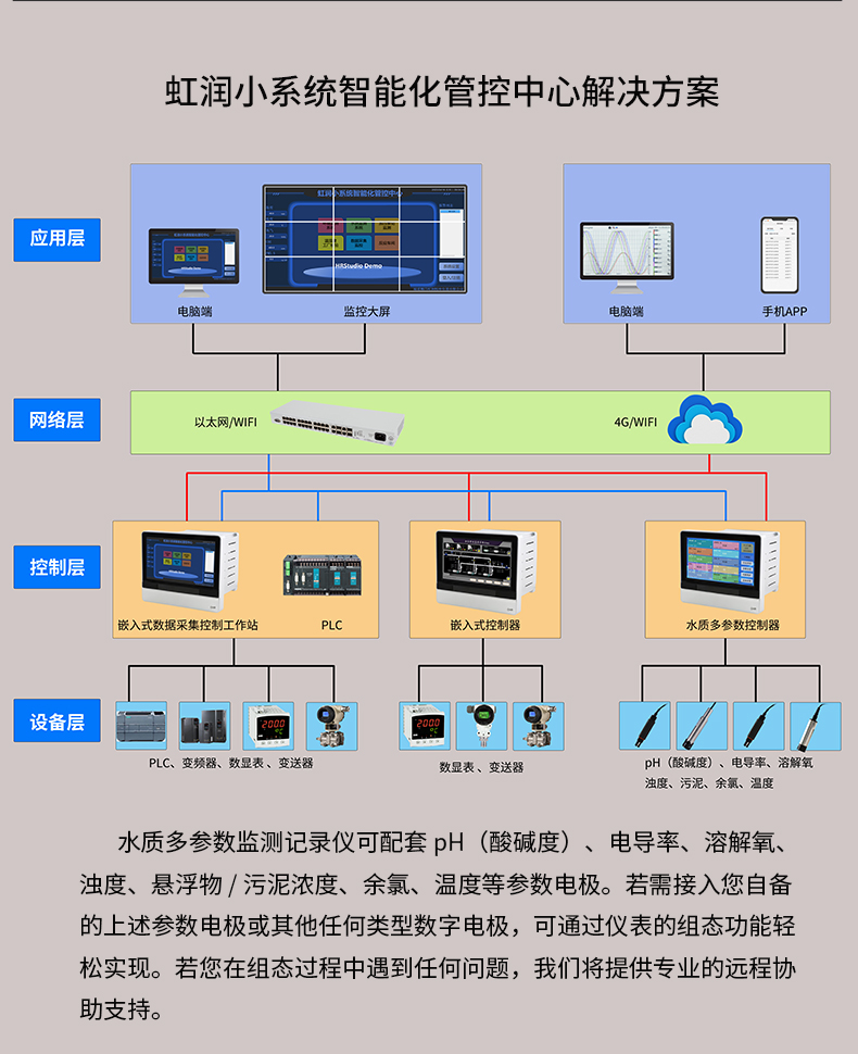 虹潤公司是專業(yè)生產(chǎn)水質(zhì)分析儀的國家專精特新“小巨人”企業(yè)。生產(chǎn)的水質(zhì)多參數(shù)監(jiān)測記錄儀,具有多參數(shù)采集同屏顯示,數(shù)據(jù)記錄與轉(zhuǎn)存,支持WiFi或4G實現(xiàn)數(shù)據(jù)云方案,內(nèi)置與外配組態(tài)軟件等特點。產(chǎn)品獲得一種適應(yīng)性強PH控制儀、嵌入式數(shù)據(jù)采集工作站、數(shù)據(jù)采集控制工作站、無紙記錄儀、智能化控制器等5項國家發(fā)明專利;主持起草通信系統(tǒng)多通道數(shù)據(jù)采集控制終端規(guī)范軍用標(biāo)準(zhǔn),物聯(lián)網(wǎng)智能記錄儀表通用技術(shù)條件國家標(biāo)準(zhǔn),以及現(xiàn)場設(shè)備集成等5項智能制造國家標(biāo)準(zhǔn),參與國際5G標(biāo)準(zhǔn)制定;取得PH無紙記錄儀等7項相關(guān)軟件著作權(quán)。產(chǎn)品廣泛應(yīng)用于實驗室、水處理、環(huán)境監(jiān)測、食品、制藥、農(nóng)業(yè)、工業(yè)流程控制等諸多領(lǐng)域。