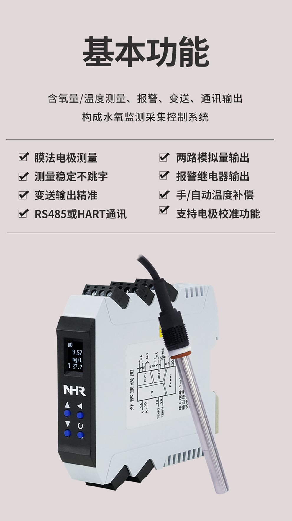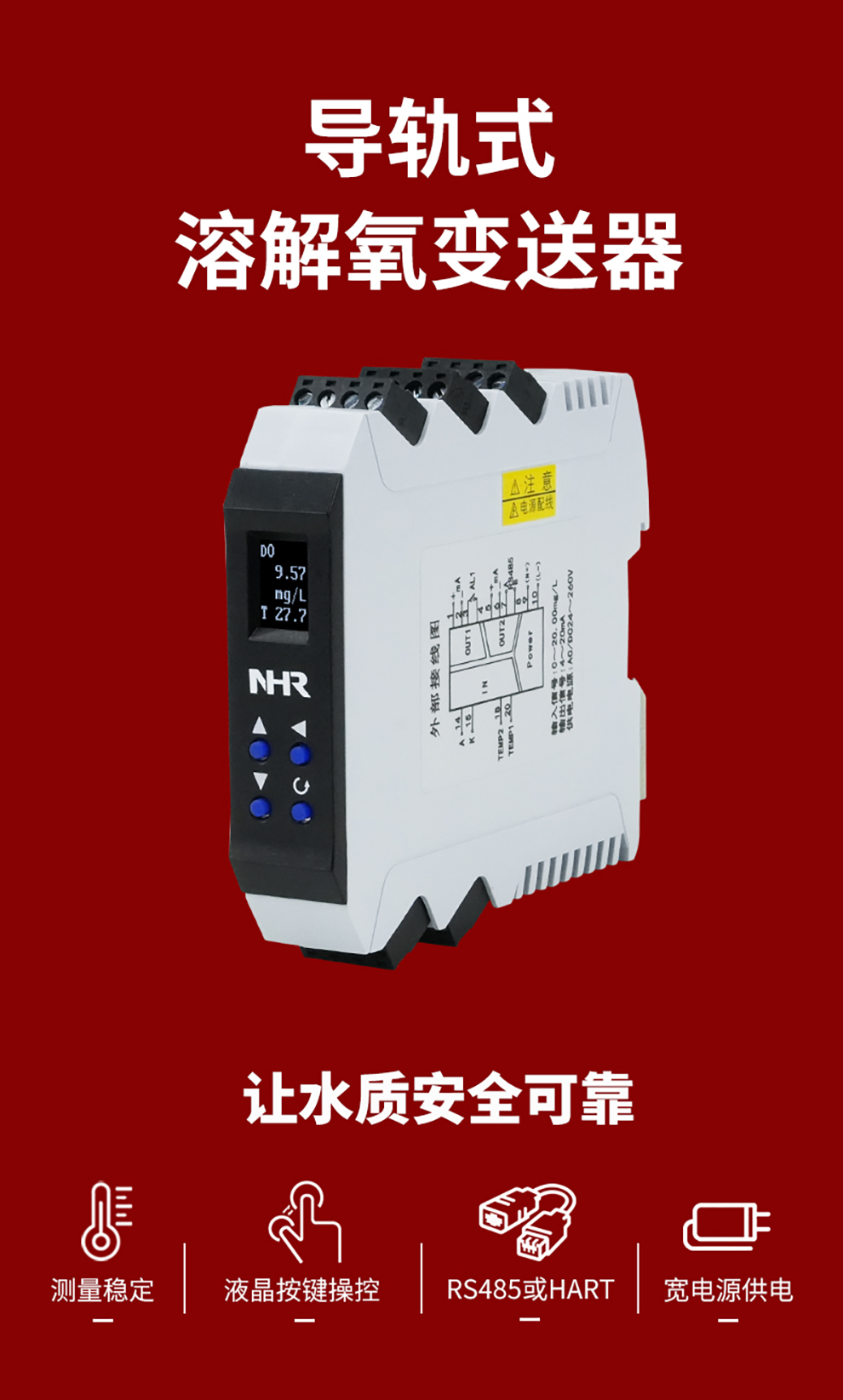 虹潤公司是專業(yè)生產(chǎn)水質(zhì)分析儀的國家專精特新“小巨人”企業(yè)。生產(chǎn)的導(dǎo)軌式溶解氧變送器,具有測量穩(wěn)定不跳字,液晶按鍵操控,變送輸出精準(zhǔn),寬范圍電源供電,RS485或HART通訊等特點。產(chǎn)品獲得一種高精度在線溶解氧測量儀表、智能化控制器、一種信號發(fā)生裝置等3項國家發(fā)明專利;主持起草現(xiàn)場設(shè)備集成等5項智能制造國家標(biāo)準(zhǔn),以及現(xiàn)場設(shè)備工具(FDT)接口規(guī)范、工業(yè)過程控制系統(tǒng)用模擬輸入兩位或多位輸出儀表、過程分析技術(shù)系統(tǒng)等3項國家標(biāo)準(zhǔn);參與國際5G標(biāo)準(zhǔn)制定,取得導(dǎo)軌溶解氧變送器等3項相關(guān)軟件著作權(quán)。產(chǎn)品廣泛應(yīng)用于實驗室、水處理、環(huán)境監(jiān)測、制藥、食品、農(nóng)業(yè)、工業(yè)流程控制等諸多領(lǐng)域。