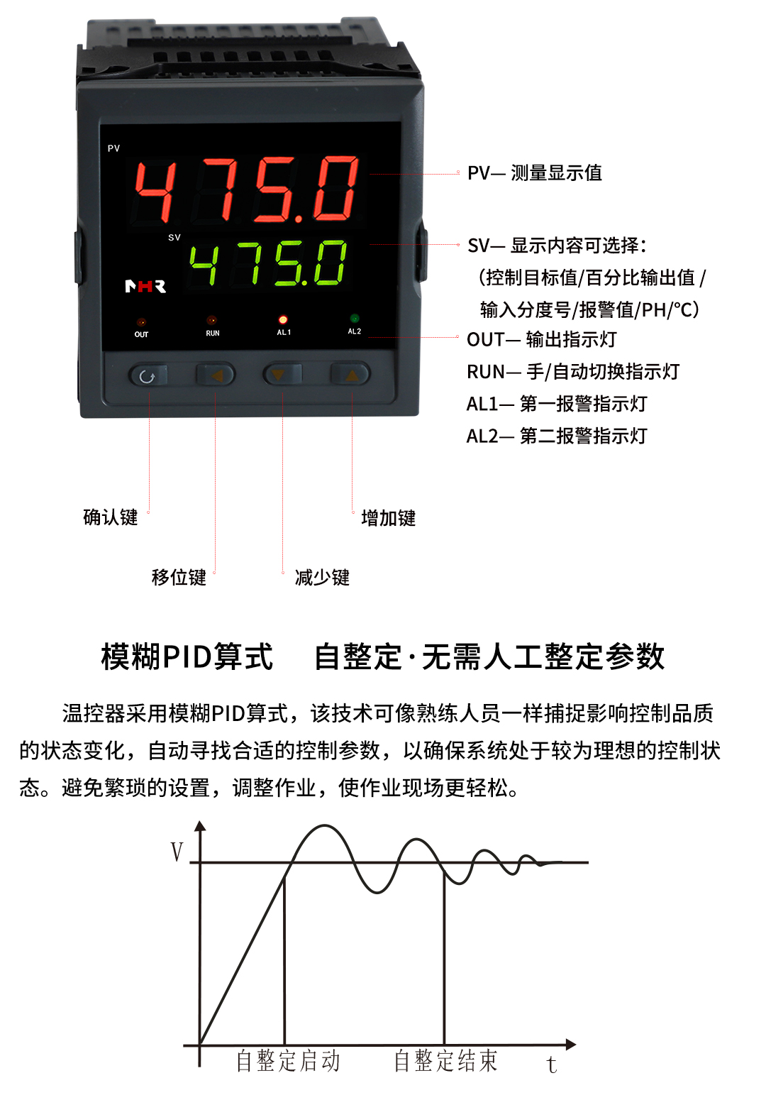虹潤(rùn)公司是專業(yè)生產(chǎn)溫控器的國(guó)家專精特新“小巨人”企業(yè)。生產(chǎn)的傻瓜式智能溫控器,具有傻瓜式操作,真正人工智能算式,無(wú)需人工整定參數(shù),控制精度可達(dá)±0.1°C,高抗干擾等特點(diǎn)。產(chǎn)品獲得模糊PID控制儀及控制方法、人工智能調(diào)節(jié)器、智能化控制器、移相觸發(fā)控制器、閥門(mén)自動(dòng)手動(dòng)無(wú)擾動(dòng)操作控制方法及裝置等5項(xiàng)國(guó)家發(fā)明專利,主持起草工業(yè)過(guò)程控制系統(tǒng)用模擬輸入兩位或多位輸出儀表、物聯(lián)網(wǎng)智能溫度儀表通用技術(shù)條件、工業(yè)過(guò)程測(cè)量和控制系統(tǒng)用智能調(diào)節(jié)器等3項(xiàng)國(guó)家標(biāo)準(zhǔn),以及通信系統(tǒng)多通道數(shù)據(jù)采集控制終端規(guī)范軍用標(biāo)準(zhǔn),參與國(guó)際5G標(biāo)準(zhǔn)制定,取得傻瓜式模糊PID調(diào)節(jié)儀等3項(xiàng)相關(guān)軟件著作權(quán)。產(chǎn)品廣泛應(yīng)用于電力、石化,冶金、制藥、食品等幾乎所有工業(yè)現(xiàn)場(chǎng),實(shí)現(xiàn)精準(zhǔn)控溫,保障生產(chǎn)安全與質(zhì)量。
