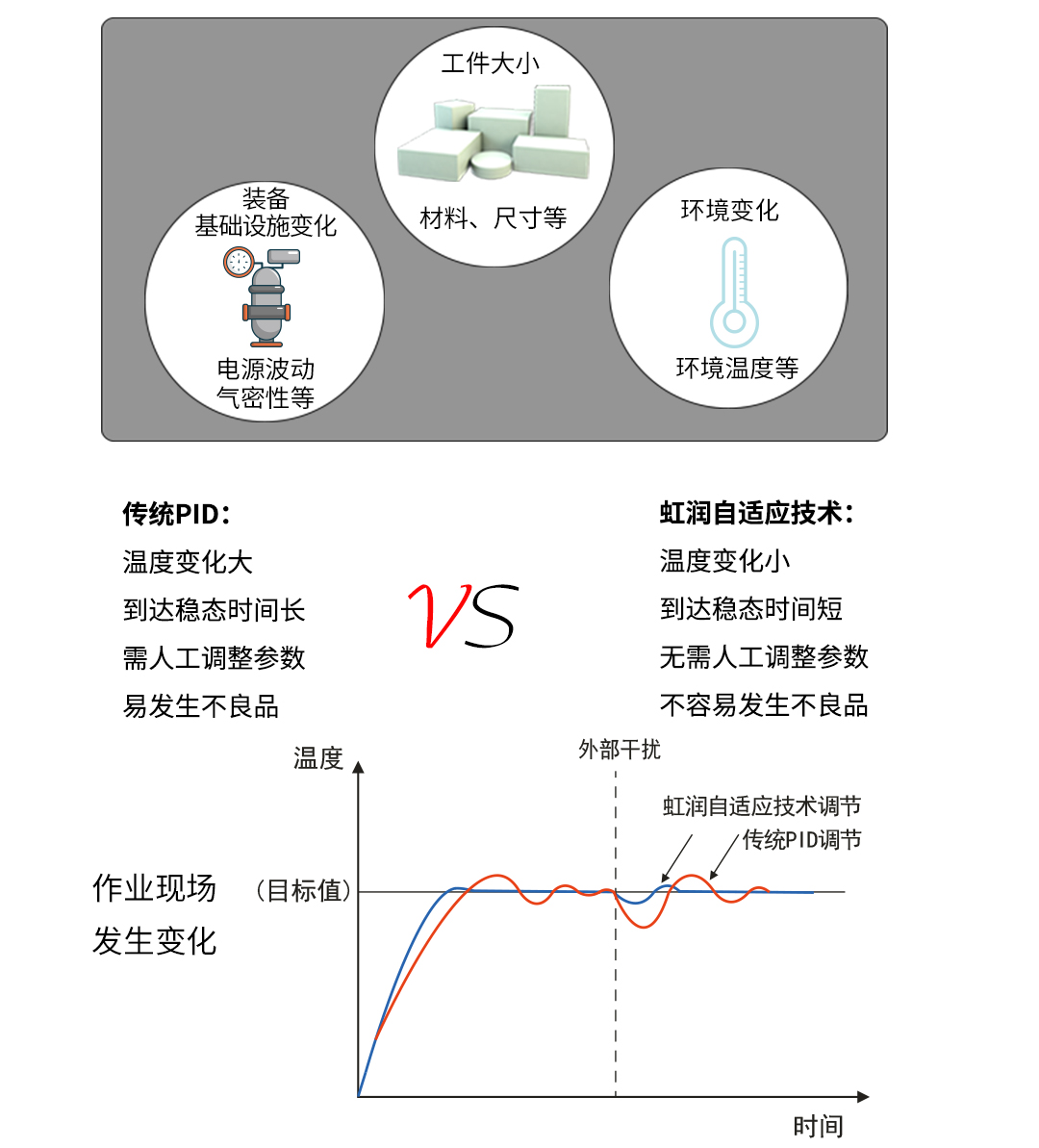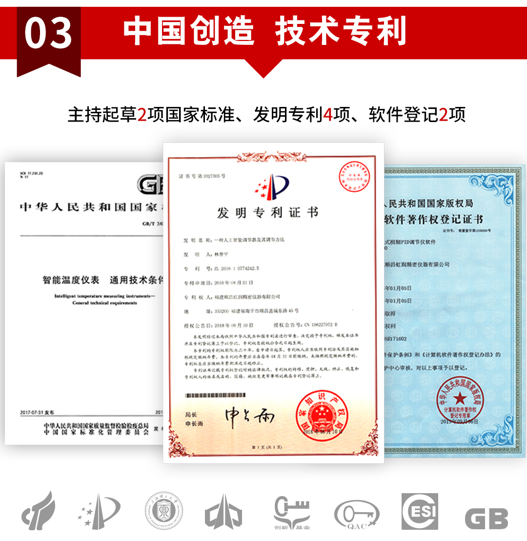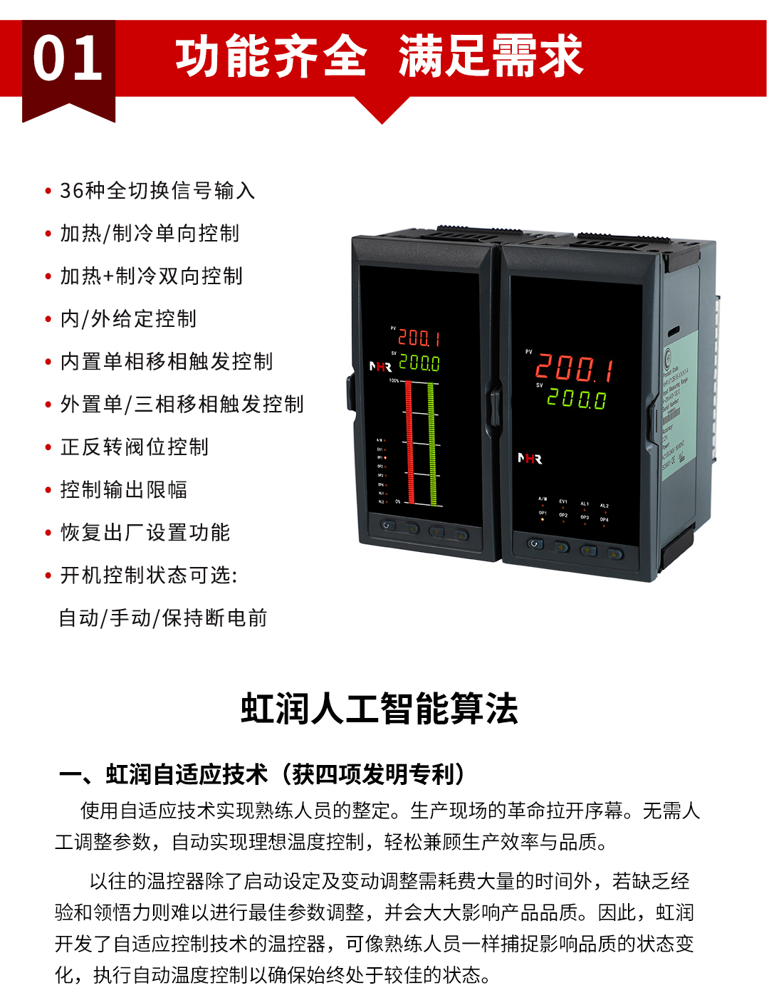 虹潤公司是專業(yè)生產(chǎn)溫控器的國家專精特新“小巨人”企業(yè)。生產(chǎn)的人工智能溫控器,具有真正人工智能算式,無需人工整定參數(shù),控制精度可達(dá)±0.1°C,多種輸出類型,高抗干擾等特點(diǎn)。產(chǎn)品獲得模糊PID控制儀及控制方法、人工智能調(diào)節(jié)器、智能化控制器、移相觸發(fā)控制器、閥門自動(dòng)手動(dòng)無擾動(dòng)操作控制方法及裝置等5項(xiàng)國家發(fā)明專利,主持起草工業(yè)過程控制系統(tǒng)用模擬輸入兩位或多位輸出儀表、物聯(lián)網(wǎng)智能溫度儀表通用技術(shù)條件、工業(yè)過程測量和控制系統(tǒng)用智能調(diào)節(jié)器等3項(xiàng)國家標(biāo)準(zhǔn),以及通信系統(tǒng)多通道數(shù)據(jù)采集控制終端規(guī)范軍用標(biāo)準(zhǔn),參與國際5G標(biāo)準(zhǔn)制定,取得模糊PID溫控儀等3項(xiàng)相關(guān)軟件著作權(quán)。產(chǎn)品廣泛應(yīng)用于電力、石化,冶金、制藥、食品等幾乎所有工業(yè)現(xiàn)場,實(shí)現(xiàn)精準(zhǔn)控溫,保障生產(chǎn)安全與質(zhì)量。