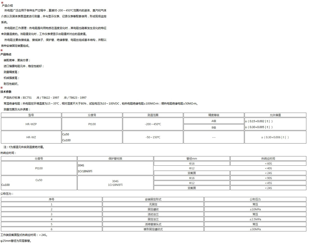 熱電阻(thermal resistor)是中低溫區(qū)最常用的一種溫度檢測(cè)器。熱電阻測(cè)溫是基于金屬導(dǎo)體的電阻值隨溫度的增加而增加這一特性來進(jìn)行溫度測(cè)量的。它的主要特點(diǎn)是測(cè)量精度高,性能穩(wěn)定。其中鉑熱電阻的測(cè)量精確度是最高的,它不僅廣泛應(yīng)用于工業(yè)測(cè)溫,而且被制成標(biāo)準(zhǔn)的基準(zhǔn)儀。