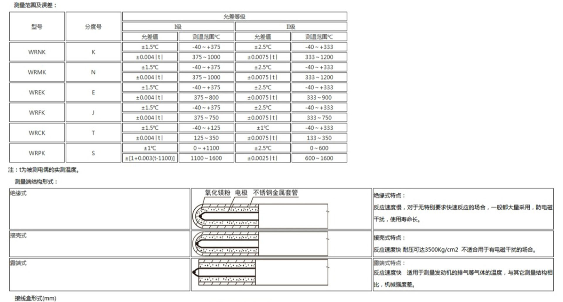 鎧裝熱電偶作為溫度測量傳感器,通常與溫度變送器、調(diào)節(jié)器及顯示儀表等配套使用,組成過程控制系統(tǒng),用以直接測量或控制各種生產(chǎn)過程中0-1800℃范圍內(nèi)的流體、蒸汽和氣體介質(zhì)以及固體表面等溫度。鎧狀熱電偶具有能彎曲、耐高壓、熱響應時間快和堅固耐用等許多優(yōu)點。