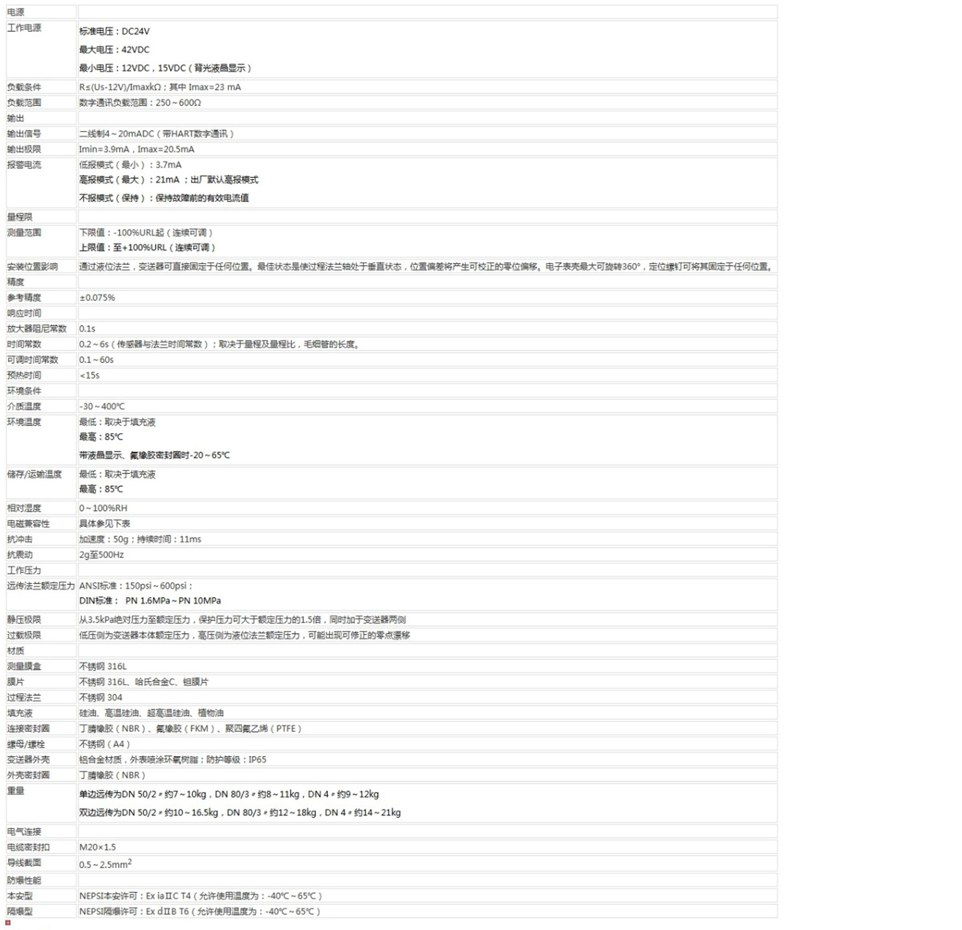 該產(chǎn)品用于測量液體、氣體或蒸汽的液位、密度、壓力,將其轉變成4~20mA (HART)電流輸出信號,可通過RST375手持終端對它們進行參數(shù)設定、過程監(jiān)控等。測量范圍(未遷移時)為0-1kPa~2MPa,液位法蘭的額定壓力分別為:1.6/4MPa、6.4MPa、10MPa、150psi、300psi或600psi。